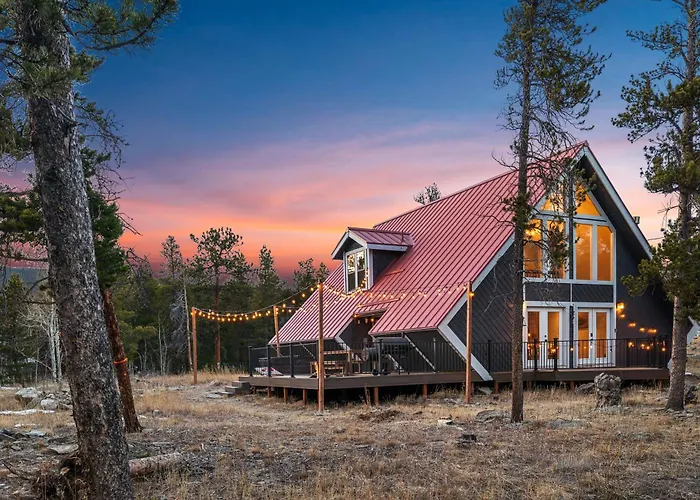 Cozy A-Frame Retreat - Hot Tub, Forest Views villa has an equipped kitchenette with coffee and tea making equipment, a refrigerator, and a stovetop. The nearest Denver International airport is 95 km away from this Black Hawk holiday home. A Jacuzzi are available on-site. Local activities include hiking and skiing.
